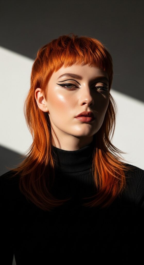 Yes, mullets are still going strong in 2026. A copper mullet is unexpected, fun, and actually super flattering. Keep the front short like a pixie and let the back grow long.