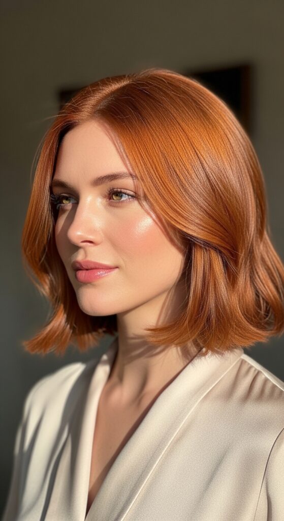 This is the “I woke up like this” of copper hair. The quiet luxury bob is all about subtle richness, not loud color. Think a deep, burnished copper with warm undertones that catch the light without screaming for attention.