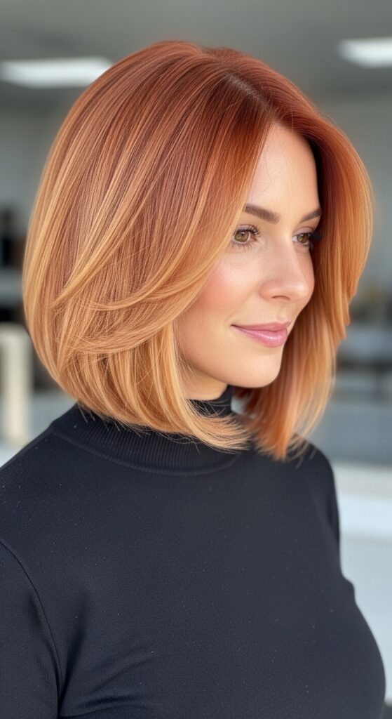 It’s perfect for anyone who wants a subtle change that still looks fresh. The bob keeps it modern and sharp, while the copper adds warmth.