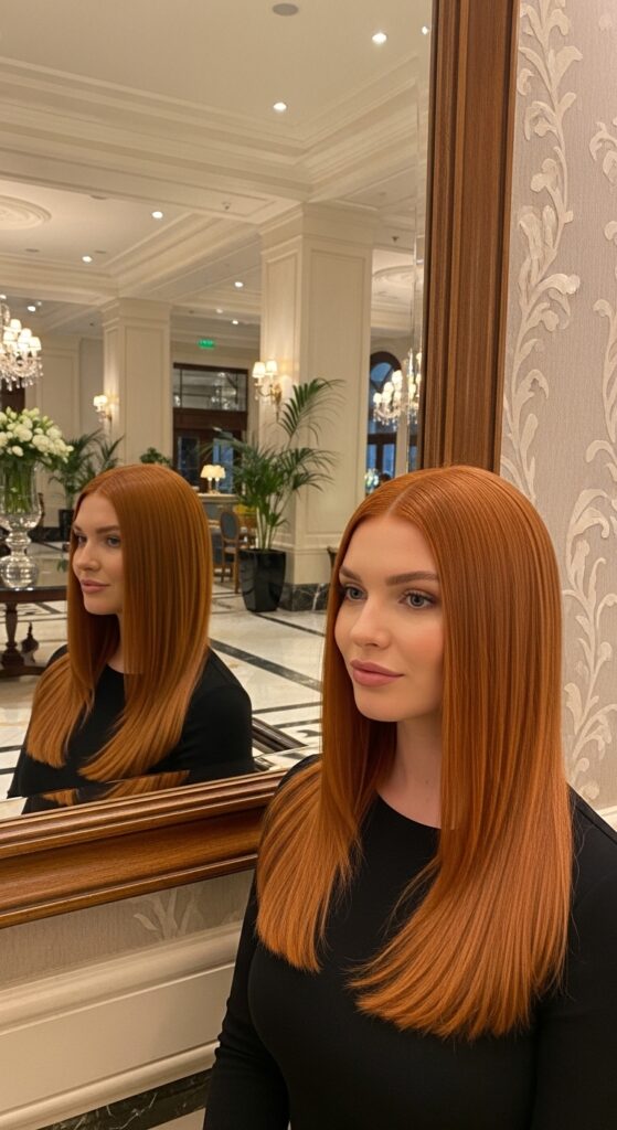 This look grows out beautifully and doesn’t require frequent touch-ups. It’s the perfect bridge between natural and bold for anyone wanting to try copper without going all-in.