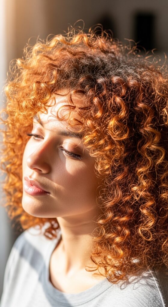 Curly hair and copper are a match made in heaven. The texture catches the light in a way straight hair can’t, creating a multi-dimensional glow that looks like spun gold.