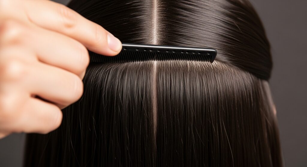 9. Smoothing Surface Hair for Sleek Styles: After teasing, use the other side of the comb (or the teeth gently) to smooth over the top layer of hair, concealing the teased base for polished volume without the “pouf” look.