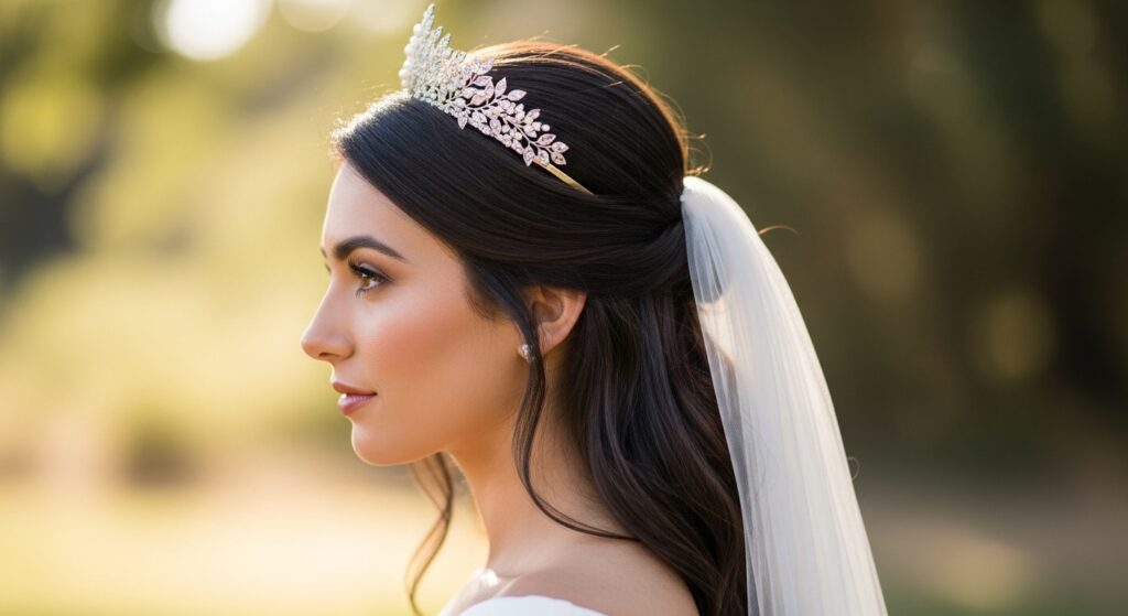 4. The Veil Anchor: For brides, a tiara is the most beautiful and secure way to anchor a delicate veil. Place the tiara, then attach the veil comb just beneath it. This creates a layered, structured look.