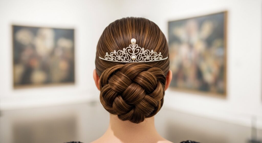 2. The Low Bun Companion: Place the tiara at the crown of your head, then gather your hair into a low, sleek bun or chignon at the nape. This balances the height of the tiara with the weight of the bun for impeccable polish.