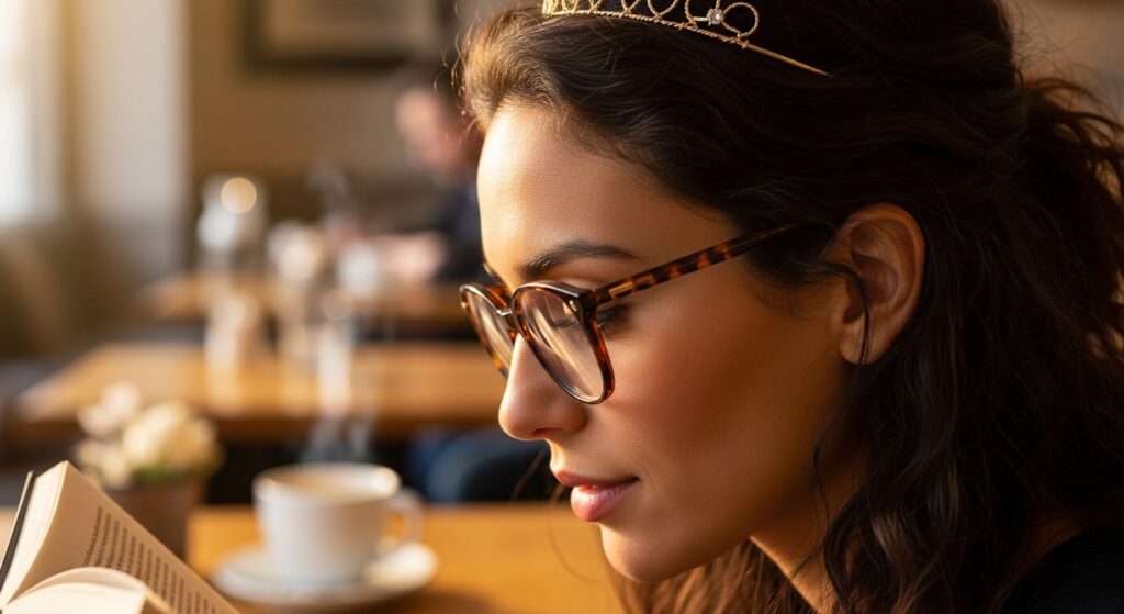 20. Understated with Glasses: Wearing glasses adds an intellectual vibe that brilliantly offsets the “princess” label. Choose a thin, wire-frame tiara to complement your specs.