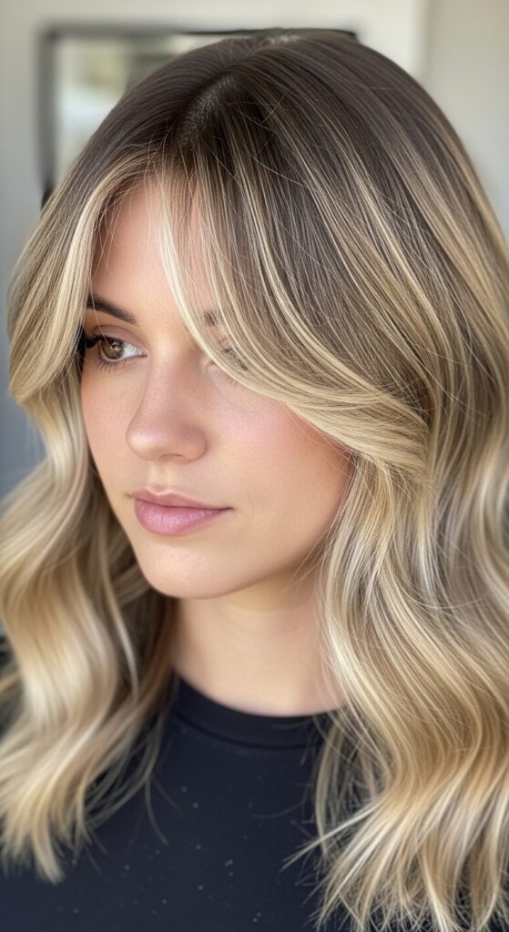 It looks natural, expensive, and adds incredible warmth to your skin tone. The waves let the color dimension really shine, making your hair look full of movement and light.