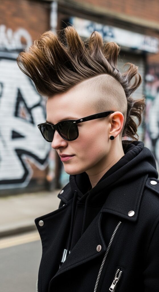 Get the drama of a hawk with the softness of hair down. This style gives you the best of both worlds. The volume on top is incredible, while the hair down frames your face.