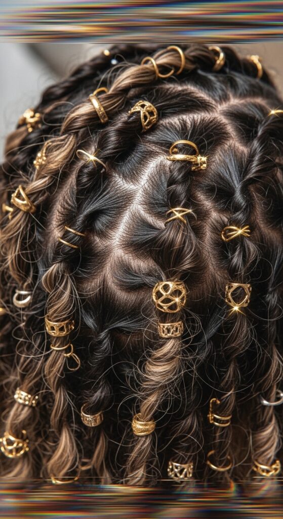 Sometimes the simplest style just needs a little sparkle. Adding accessories like tiny cuffs, rings, or even pearls to individual coils or twists can transform your everyday look into something editorial.