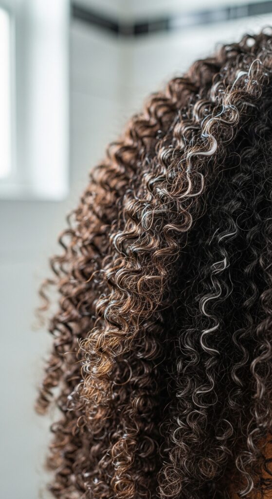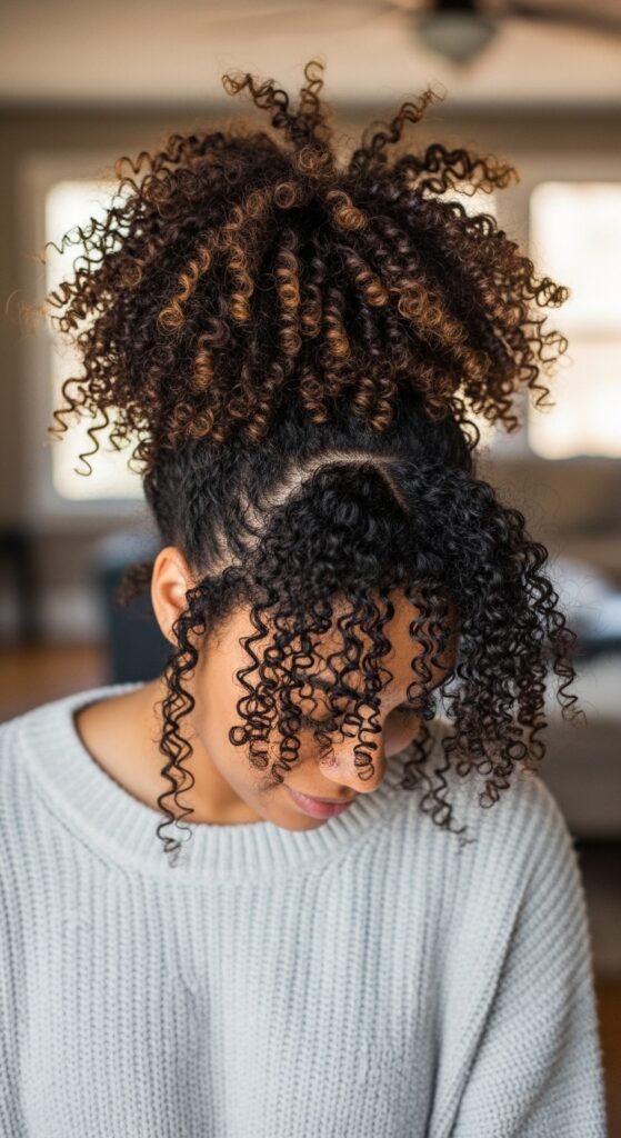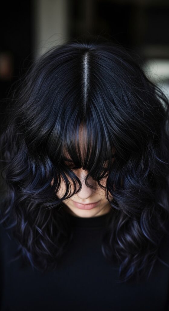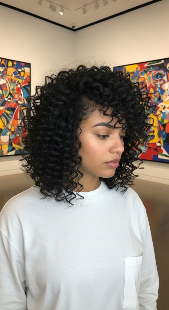 Layers are key here. They remove weight, encourage volume, and let your coils spring up at different lengths for a deliberately messy, artistic vibe. It’s dark, romantic, and full of personality.