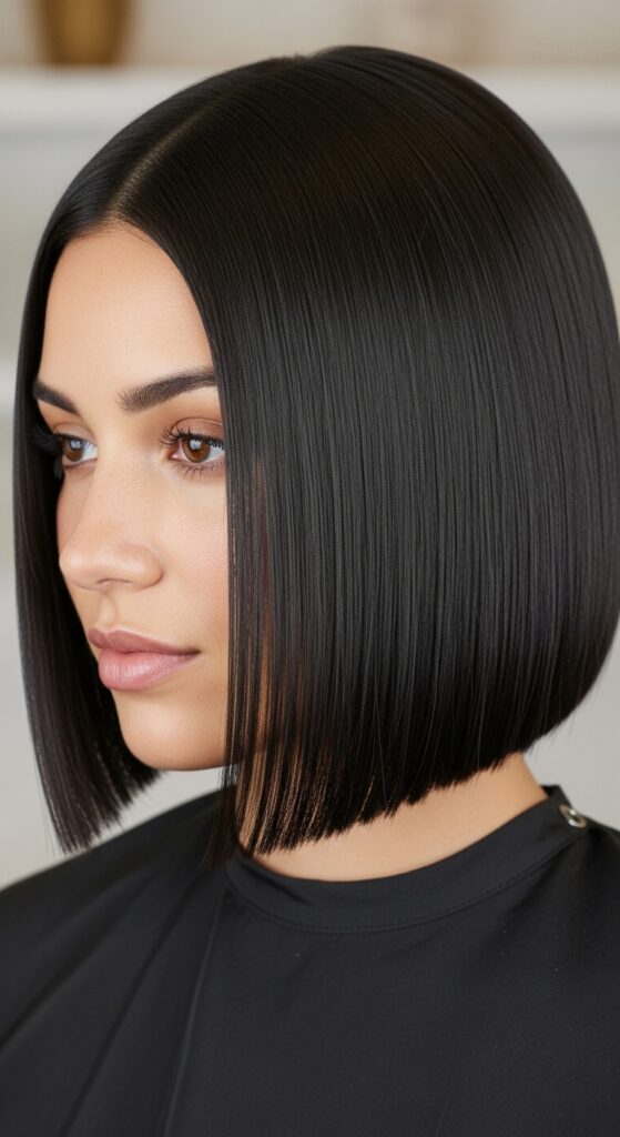 Ask your stylist for a cut on blown-out or stretched hair so they can see the true length. When it shrinks, you get a chic, geometric shape that’s full of movement.