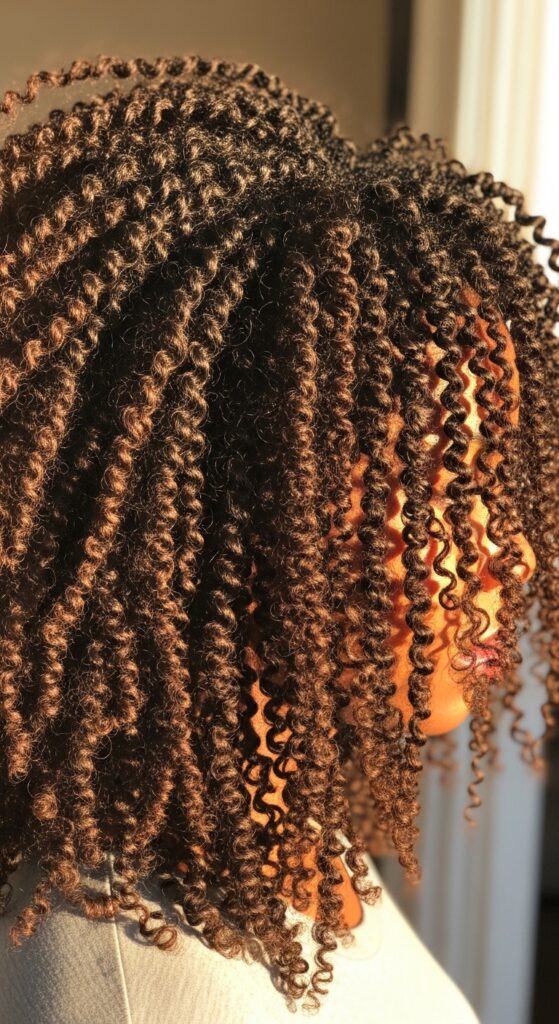 The ultimate protective style staple. Medium twists are perfect—not too small (to save time) and not too big. They’re protective, cute, and can be styled in so many ways: up, down, half-up, you name it.