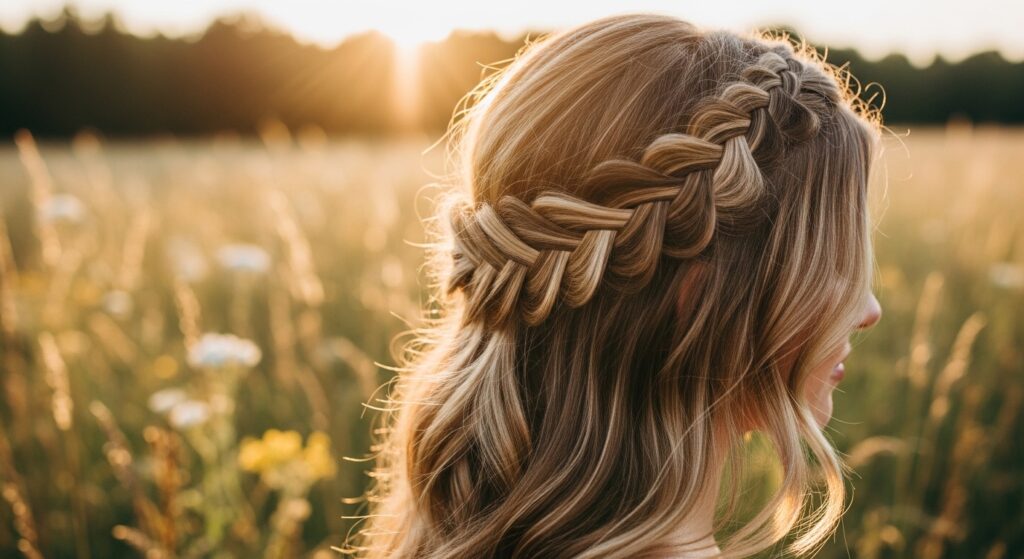 8. The Boho Waterfall Crown: A fuller take on the headband style, this involves creating a waterfall braid that wraps entirely around the head, using hair from both the top and sides for a complete crown.