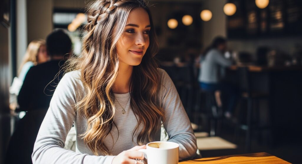 2. The Simple Waterfall Headband: Learn to braid across your hairline like a crown. This style keeps hair out of your face while adding a boho-chic touch. It’s surprisingly simple once you get the rhythm.