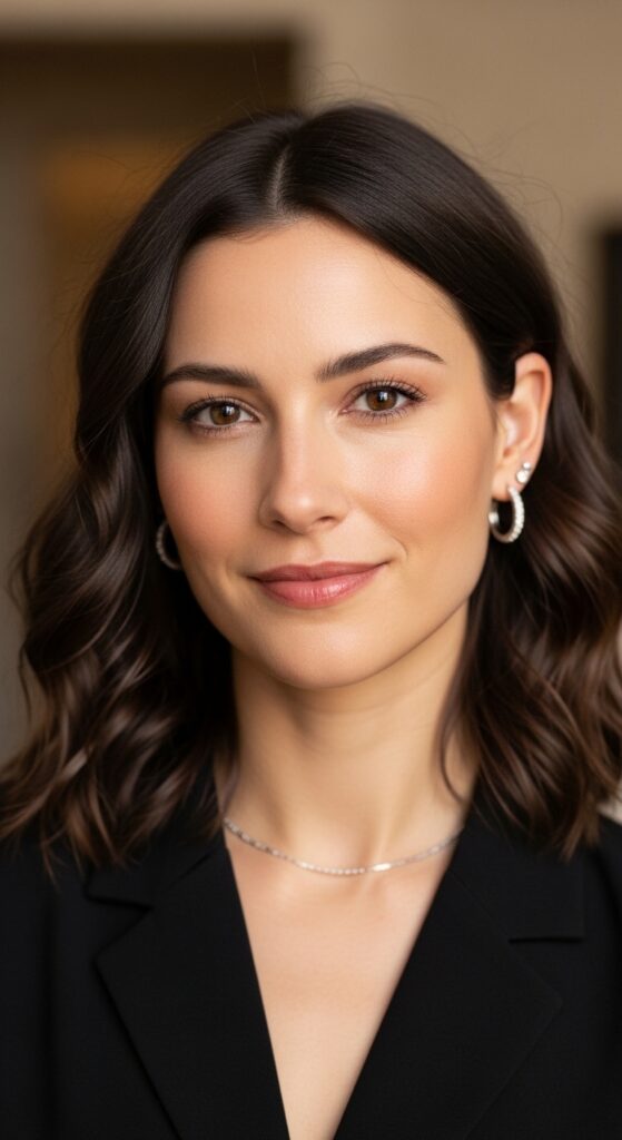 For the interview, style it with the front layers falling slightly forward to frame your face, or tuck them behind your ears for a more direct look. The key is keeping it shiny and healthy. Dark, glossy hair with defined layers looks expensive and intentional.