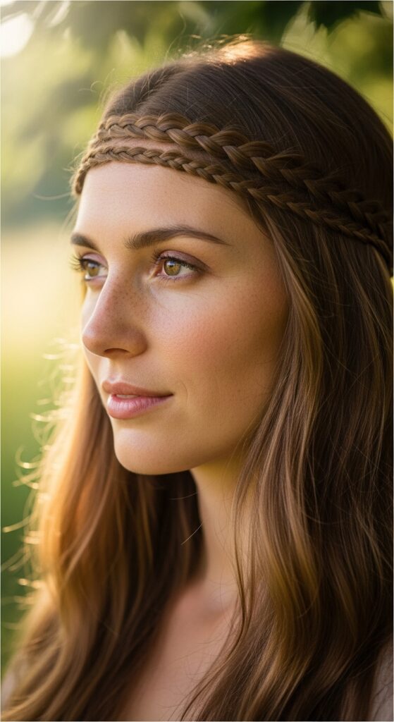 If you have long hair and want something special, the braided crown is a lovely choice. You take two small sections from each side, French-braid them, and pin them at the back. It looks like a delicate headband made of hair. It keeps your hair off your face and looks incredibly thoughtful.