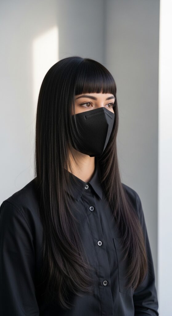 If you’ve been seeing the hime cut on Pinterest and wondering if it’s interview-appropriate, the answer is yes—if you style it clean. This Japanese-inspired cut has straight-across bangs and two sharp sections framing the cheeks. It’s very defined and graphic. For an interview, keep the rest of your hair sleek and straight, or pulled back into a low ponytail.