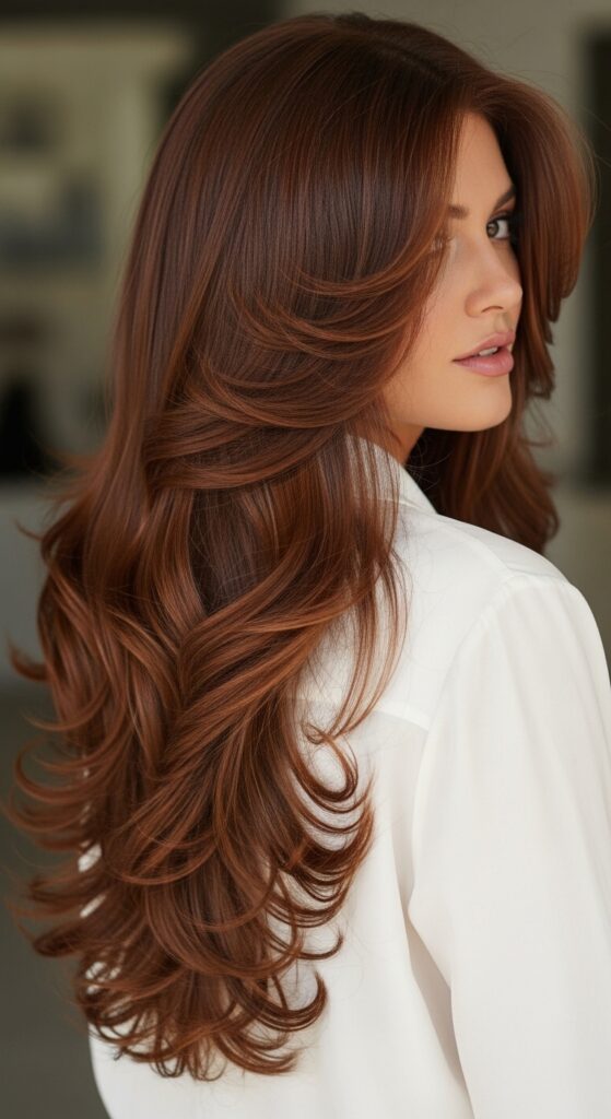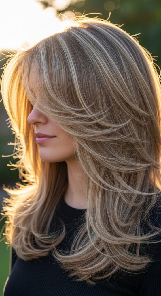 Feathered layers are a game-changer for thick hair. They remove weight from the ends without sacrificing length, so your hair moves like it’s always having a good hair day. I love how these layers create a soft, airy shape that doesn’t look stiff or overdone.