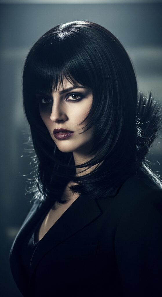 This cut is perfect for romantic goth hairstyles or any look that needs a touch of drama.