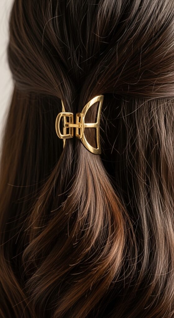 Gather the top section, twist it once, and clip it back with a single, beautiful barrette. You can place it straight across or at a slight angle.