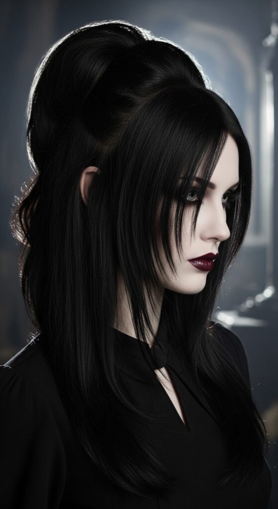 Bring a touch of your personal style into the corporate world. This takes the romantic goth hairstyles vibe—think deep parts, texture, and intrigue—and makes it boardroom-appropriate.