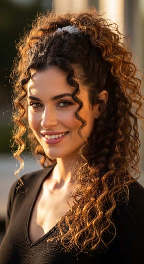 For my curly girls, this style celebrates your texture. The key is definition and hydration to avoid frizz and keep your curls looking their best all day.
