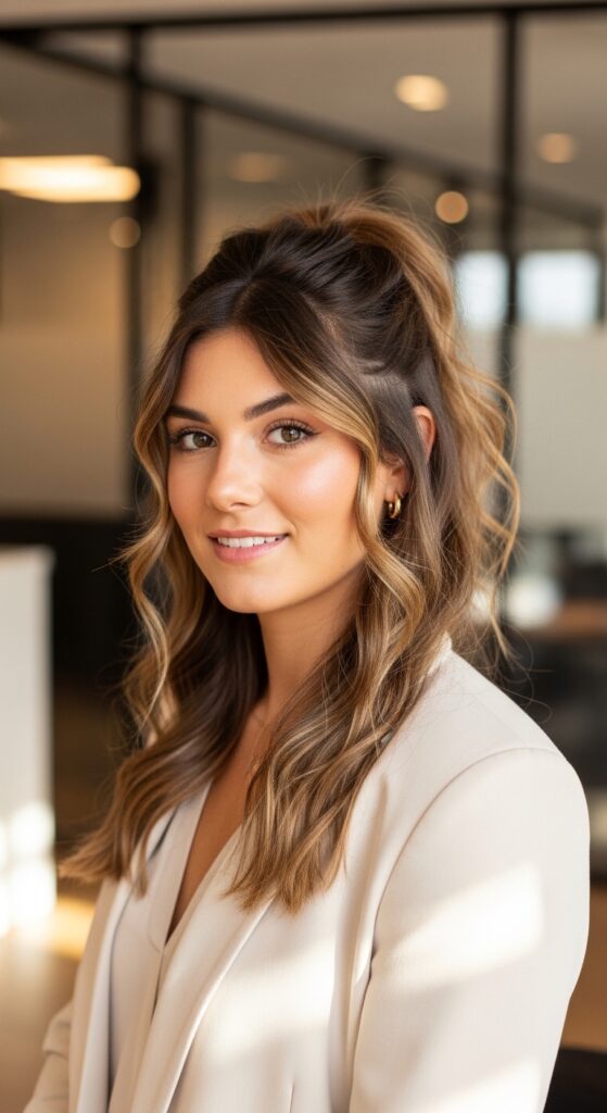 23 Business Casual Hairstyles Half Up Low Ponytail Textured Waves Versatile