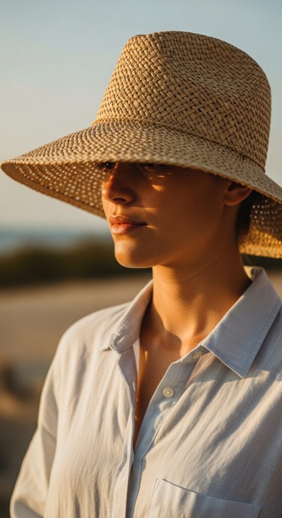 For sun protection with a major dose of glamour, a wide-brimmed hat is your best friend. It’s sophisticated, romantic, and provides wonderful shade for your face and scalp.