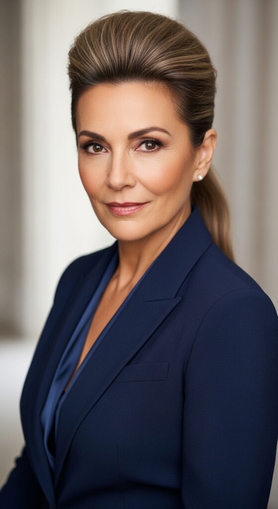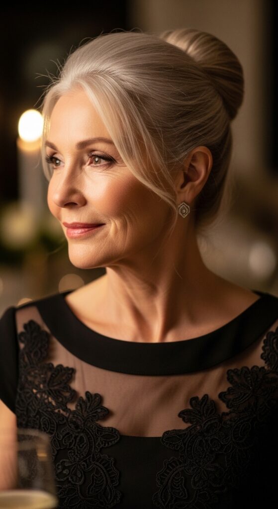 For those occasions when you need to look pulled together in a flash, the sleek high bun with wispy baby hairs is your secret weapon. It’s elegant, graceful, and takes under five minutes.