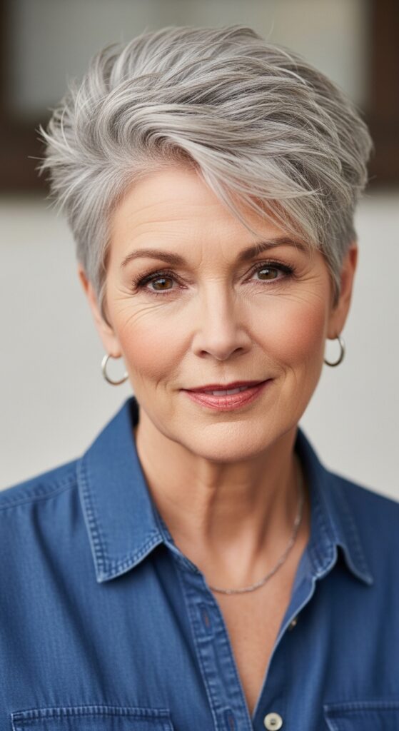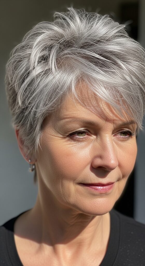 Grown-Out Pixie with Soft Silver Highlights