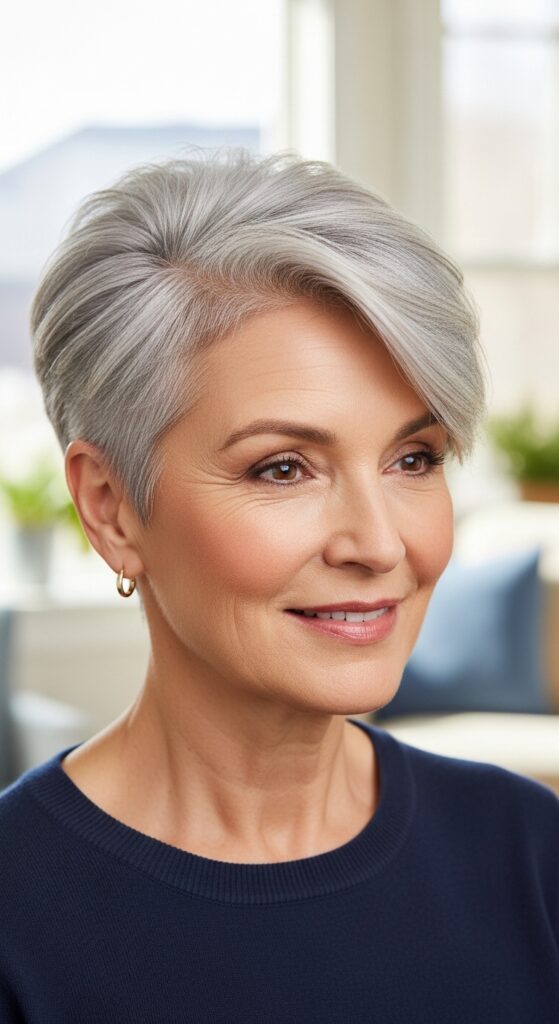 This style works with straight or slightly wavy hair, and it grows out beautifully. It’s the kind of cut that says you know exactly who you are—and you don’t need to prove anything.
