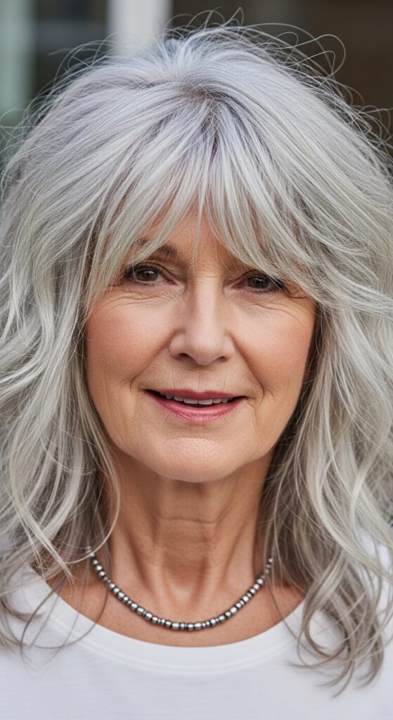 Wavy Shag with Silver Curtain Bangs