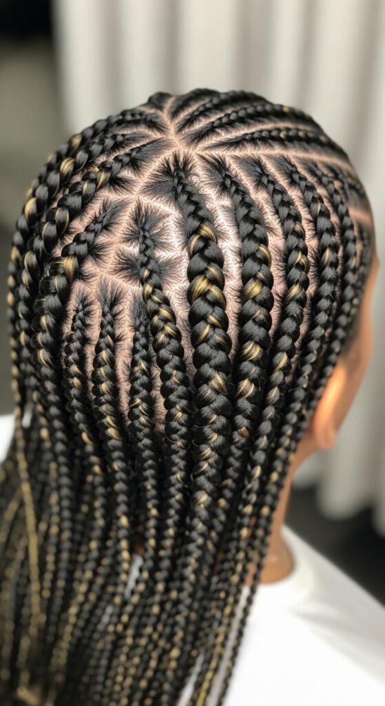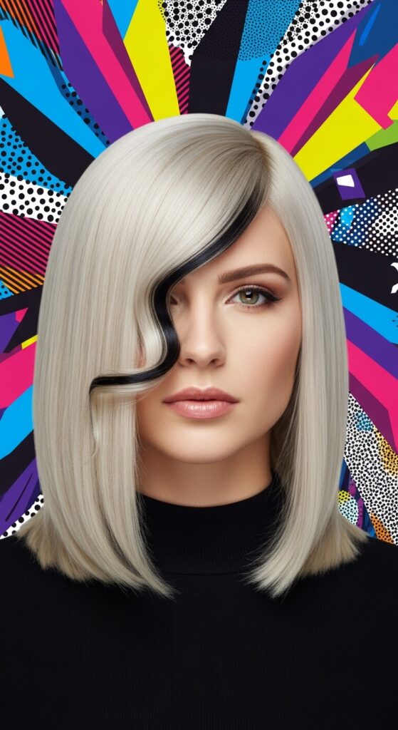 It’s a playful, artistic take on polished hair. It looks like a digital error made chic, perfect for the fashion-forward.