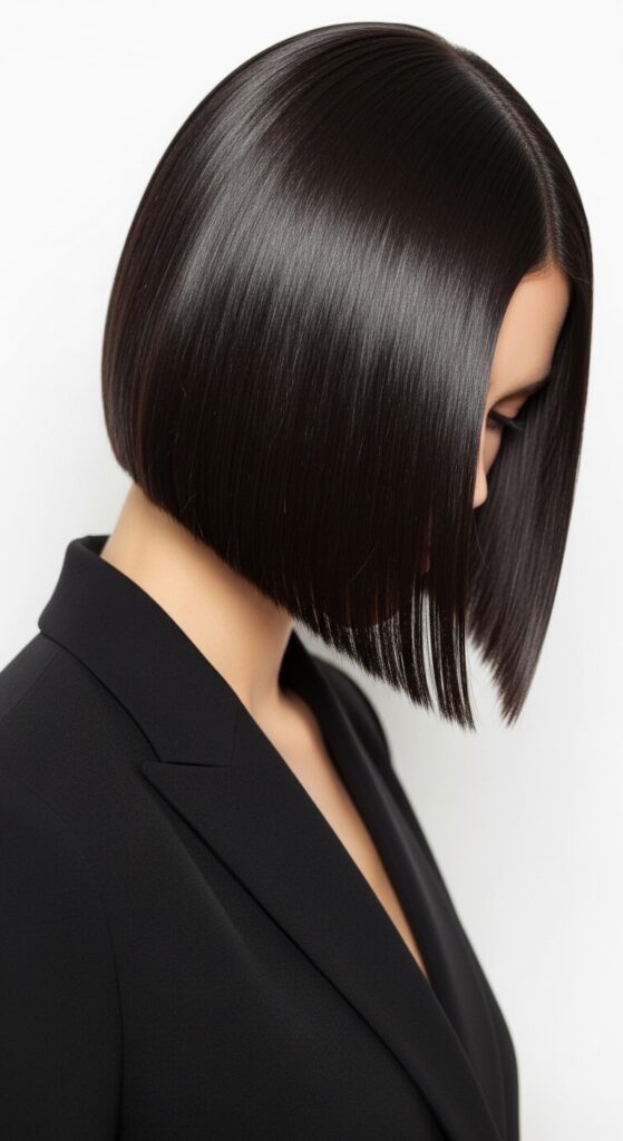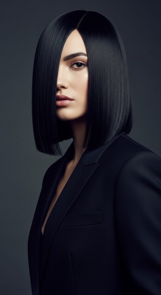 Sometimes, high-shine and precision are the ultimate luxury. A pin-straight, glass-like lob exudes power, polish, and sophistication.