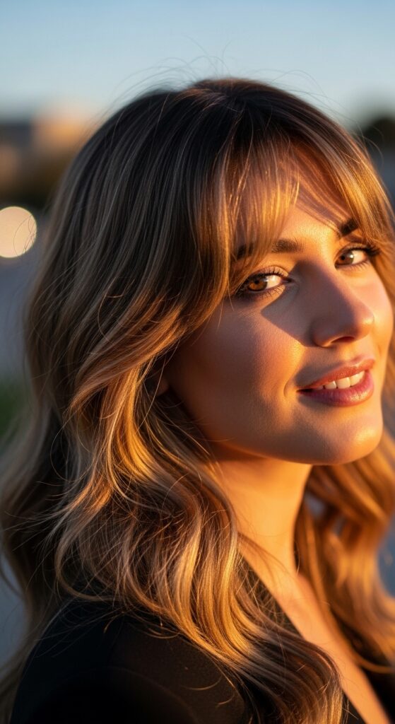 This combo is the ultimate romantic, vintage-inspired look. Soft, face-framing waves meet effortless curtain bangs for a style that feels both fresh and nostalgic.