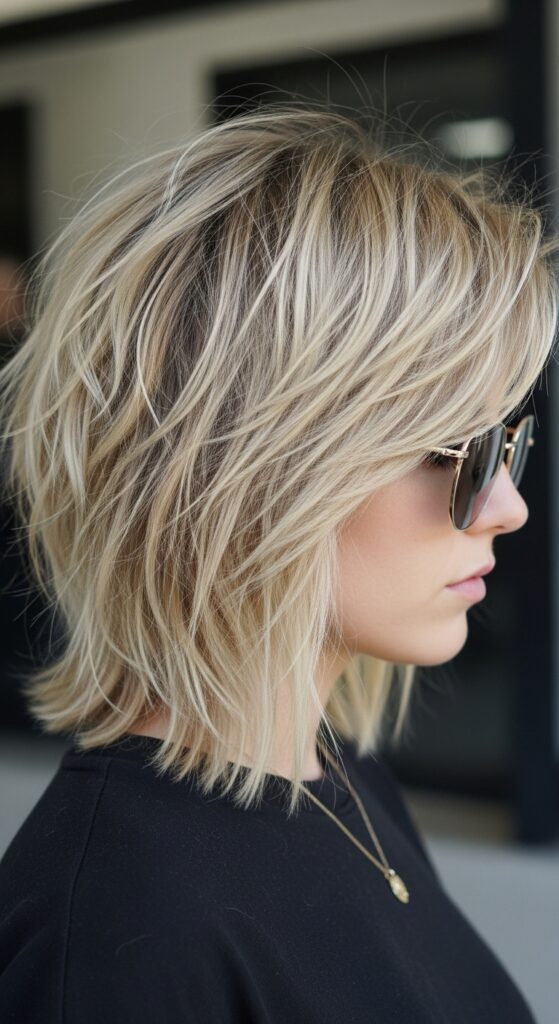It’s edgy, cool, and full of texture. Perfect for someone who wants a dramatic change that’s still wearable.