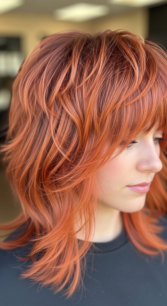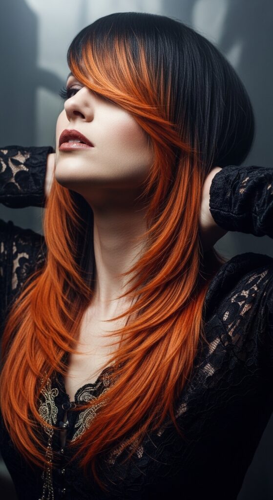 For my long-hair lovers, this is your finale. Long, cascading layers dipped in a fiery, vivid copper. The length lets the color create an ombre or balayage that’s truly breathtaking.