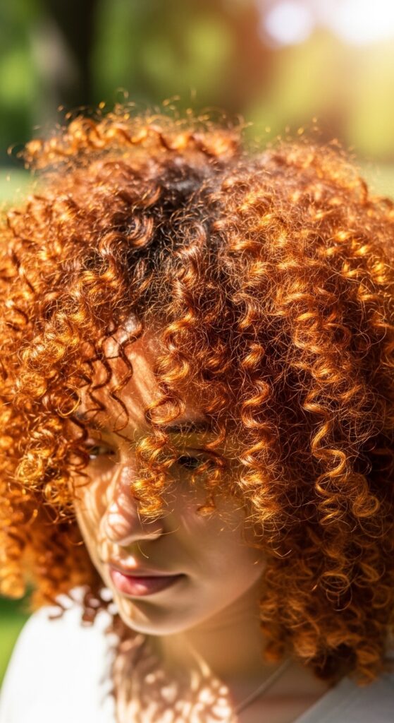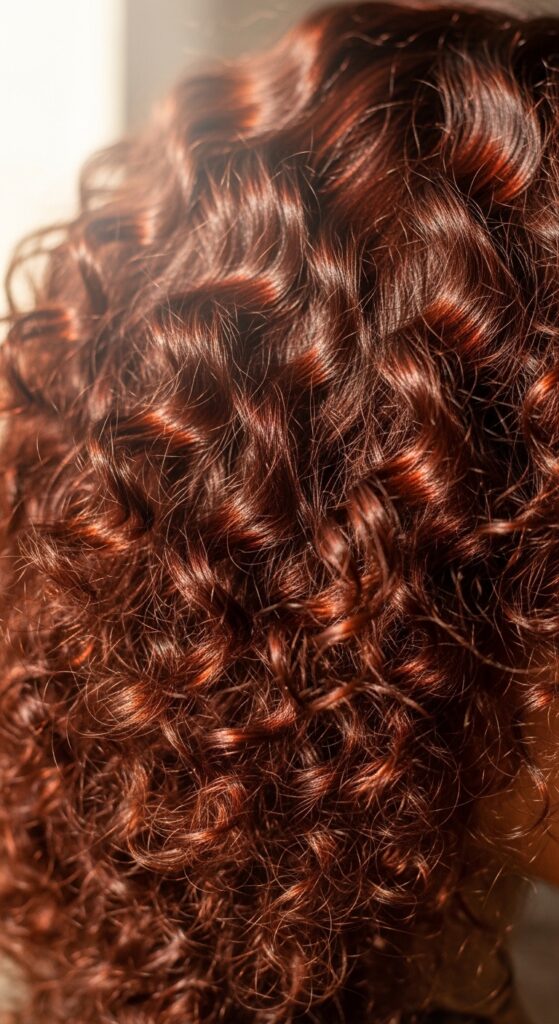 Curly girls, this one’s for you. A deep, auburn copper makes every curl pop with definition and shine. The color naturally has dimension, which enhances your curl pattern.