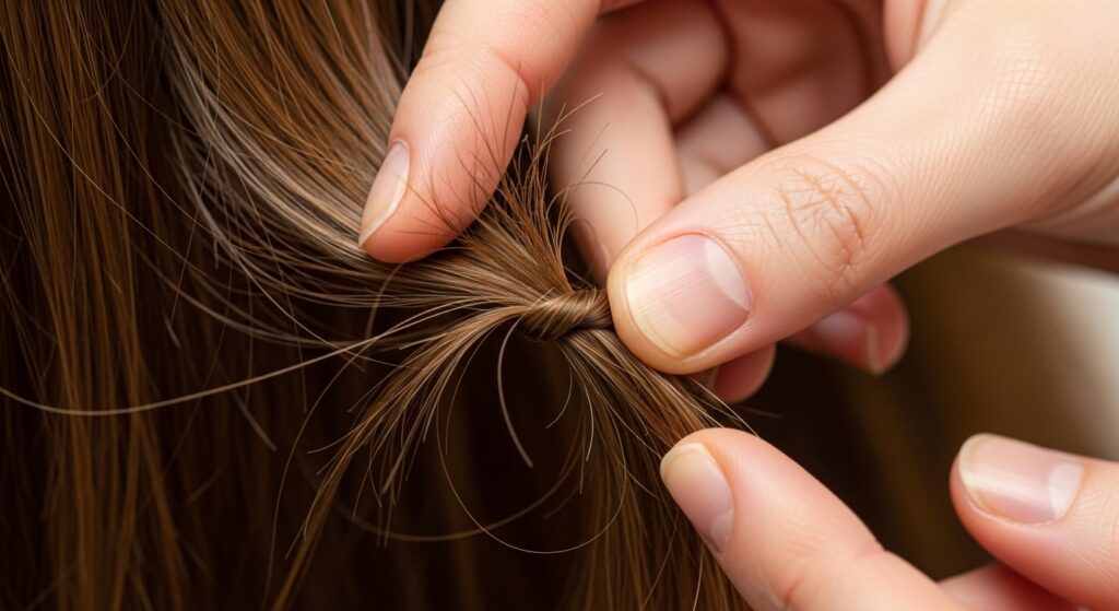 16. The “Hold Above” Technique for Snarls: For a major knot, always grip the hair above the knot. This takes tension off the root. With the other hand, gently pick the knot apart from the bottom.