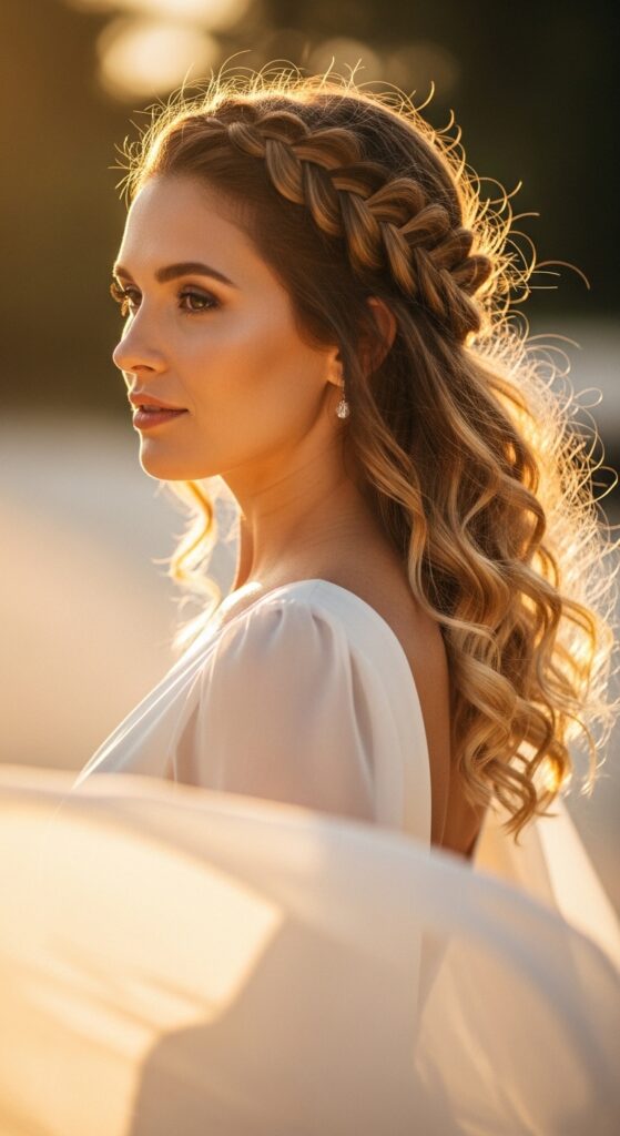This one feels like you’re a fairy queen but takes only ten minutes. Start the braid behind one ear, work it across your hairline, and tuck the end behind the opposite ear. It instantly elevates any outfit.