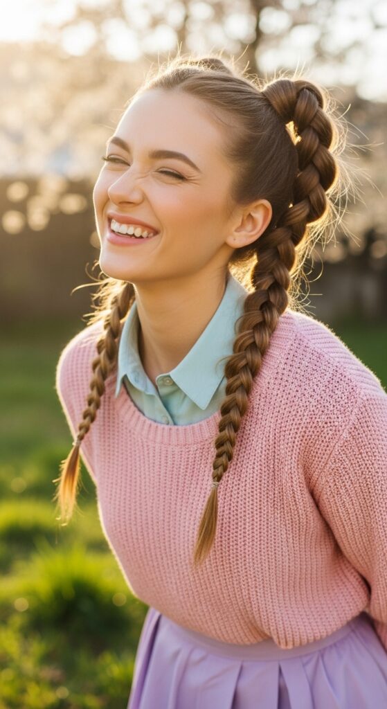 Yes, pigtails are for adults too. Loosen them slightly, and they go from “school girl” to “cool girl” in seconds. They’re also incredibly practical for active days.