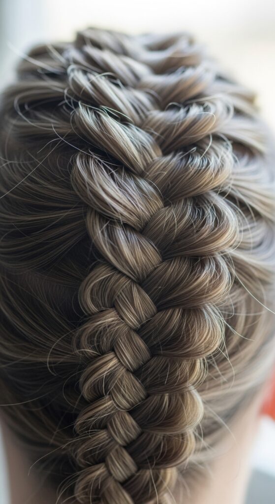 This is the ultimate starting point. Part your hair straight down the middle, then French-braid each side backward (under, not over) for that raised, 3D look. It keeps every strand tucked away for a clean finish.