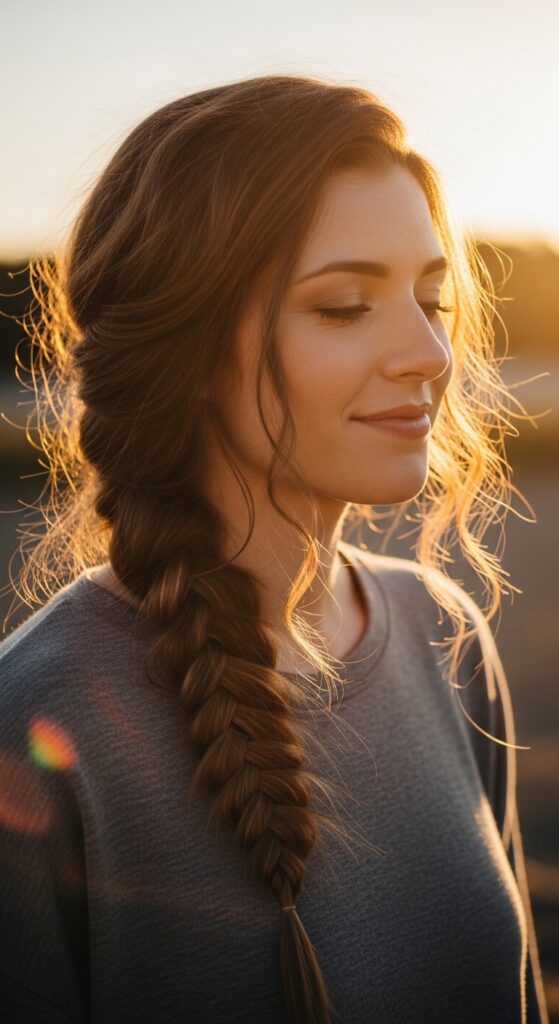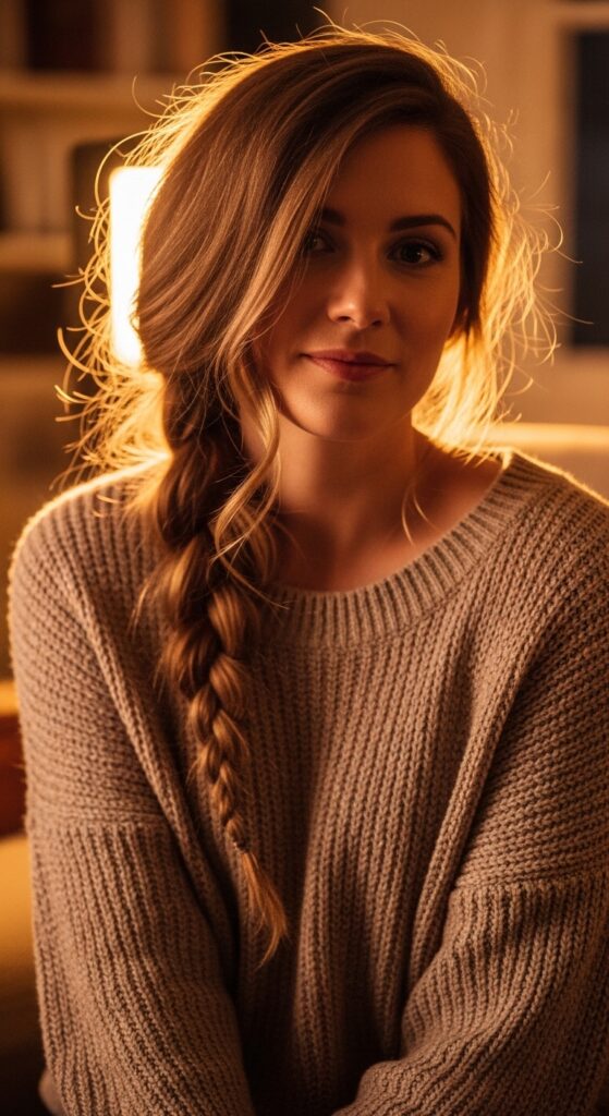 Instead of going down the center, sweep all your hair to one side before braiding. It’s instantly romantic and a little bit undone. Perfect for when you want that “I woke up like this” look that’s actually intentional.