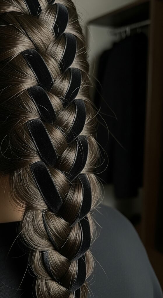 - Pro tip: Pull the braids slightly looser at the crown for a softer, more romantic goth hairstyles energy if you add dark velvet ribbons