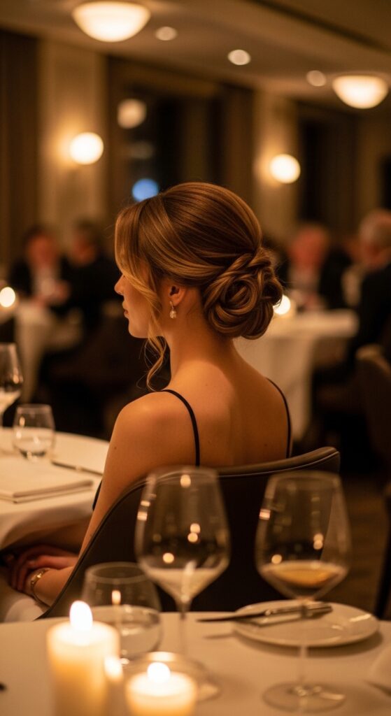 This is my go-to for a fancy dinner. It’s elegant, keeps hair off your neck, and won’t get messy while you’re eating. It feels special without being overly complicated.