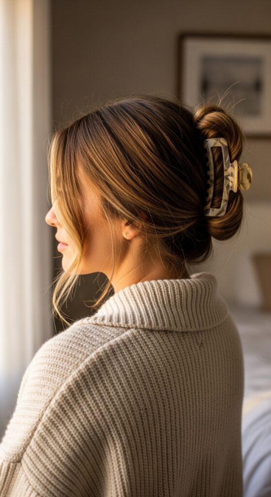 Opt for a low, loose twist at the back of your crown, not the top. Use a simple, high-quality fabric scrunchie or a discreet claw clip. The hair left down should be sleek—a perfect match for the quiet luxury bob trend we’re seeing everywhere.