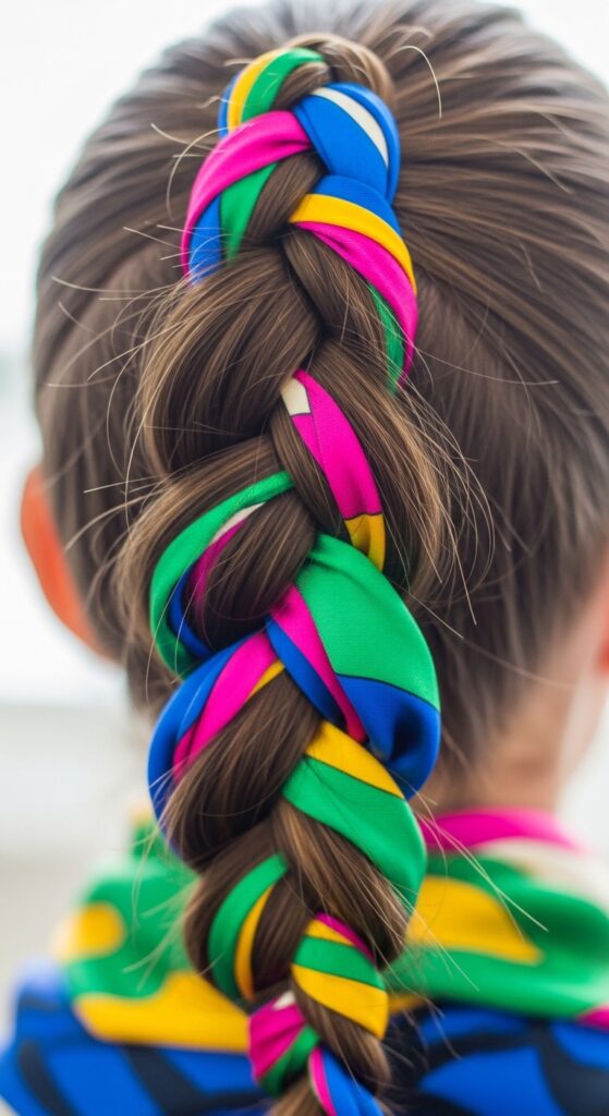 Fold a long, thin scarf into a band. As you gather your half-up section, incorporate the scarf as one of the strands in your rope braid or twist. Tie the ends into a small knot or bow for a playful finish.