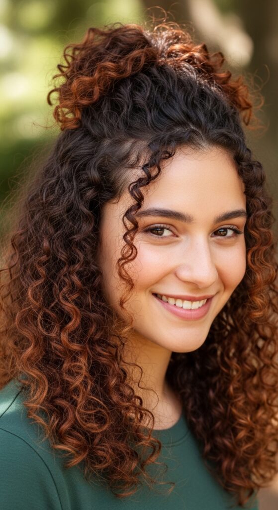 Curly friends, this one’s for you. Embrace your texture! A half-up twist on curly hair is effortlessly gorgeous and takes seconds. It reduces bulk without hiding your beautiful curls.