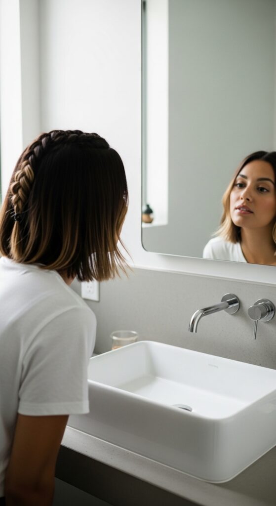 Create a deep side part. Take a section from the heavier side, start a rope braid near your temple, and braid it back, incorporating small pieces as you go. Secure it loosely at the back of your head for that artfully undone look.