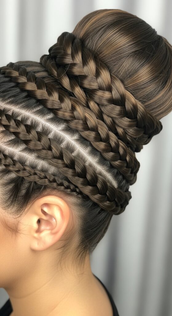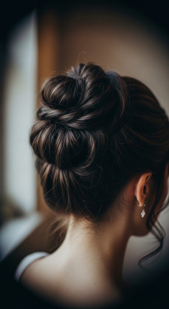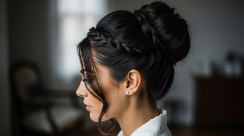 This is your all-day, won’t-budge style. It starts with a tight braided crown that feeds into the bun, locking everything in place. It’s beautiful and incredibly practical for long days.