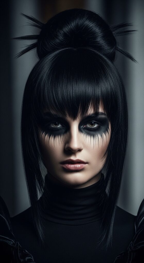 Channel the vampire haircut vibe with sharp, defined layers and a stark bun. This look is dramatic, clean, and a little bit undone at the same time. It’s perfect for making a statement.
